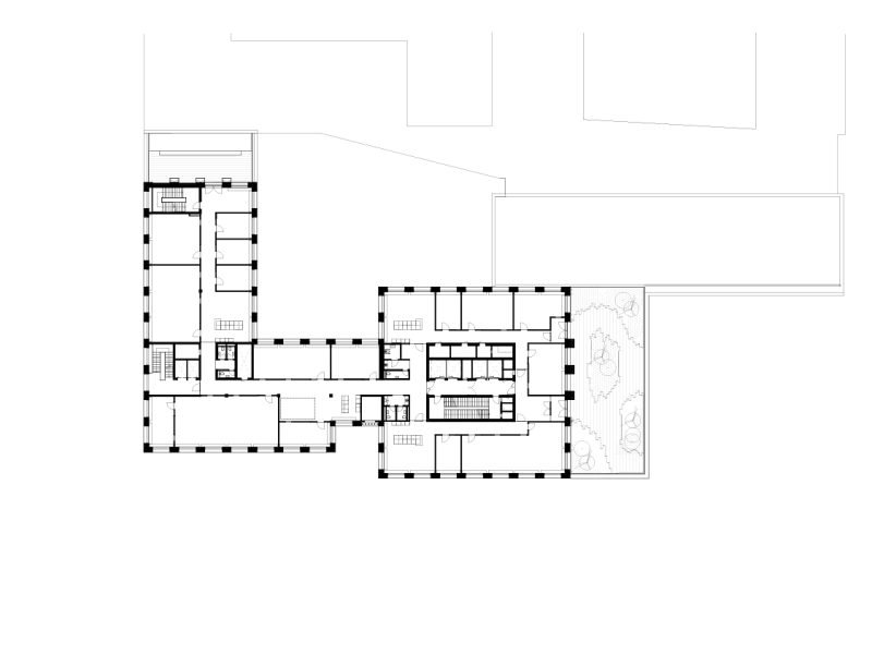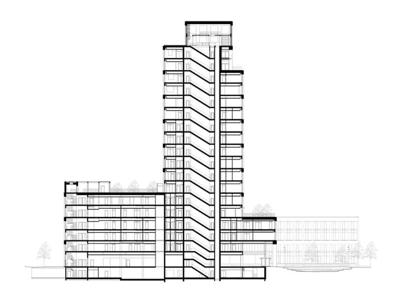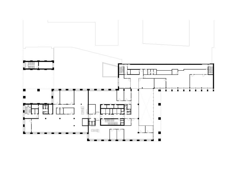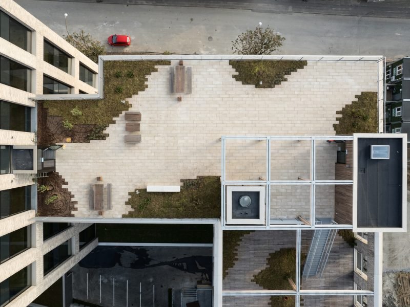 Besides the office spaces, also provides a restaurant, a café, informally shared workspaces, as well as meeting and event facilities that promote inspiration and community